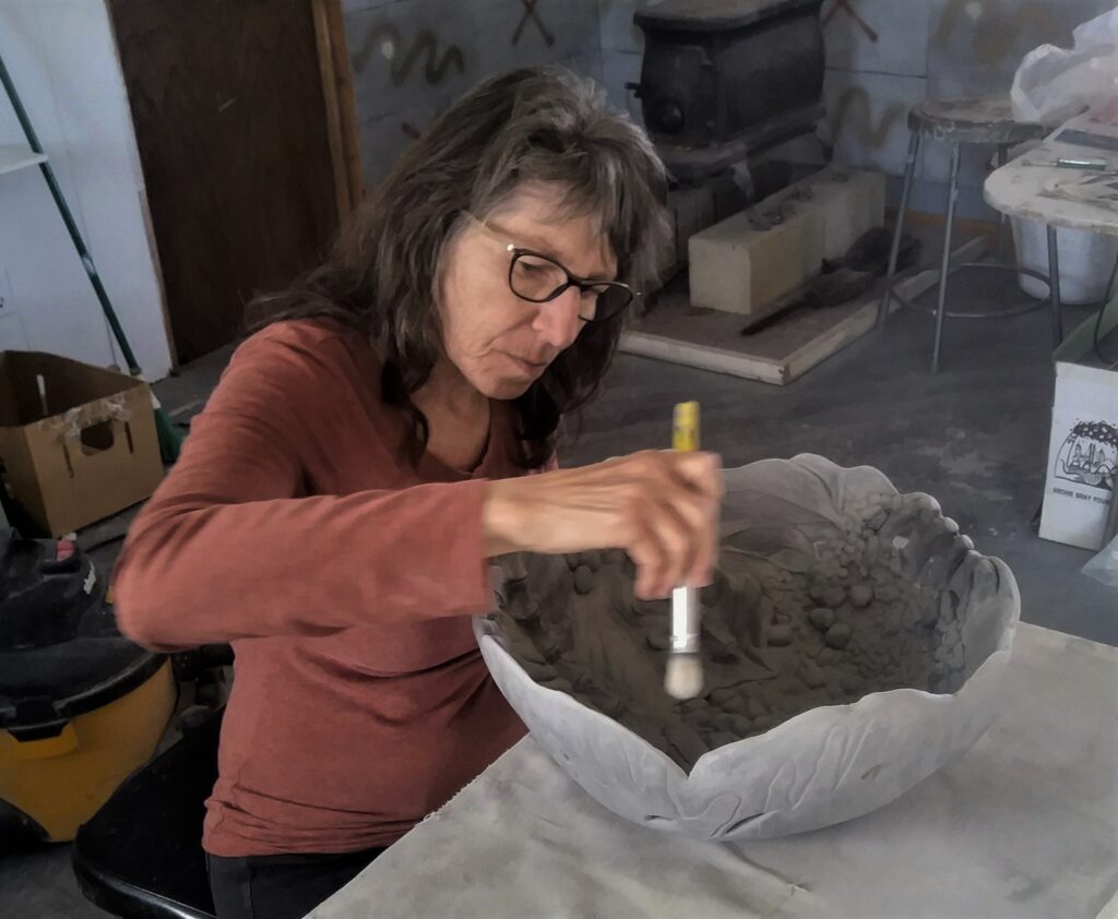 Finding free chunks of cottonwood right outside my door changed my direction from painting to sculpture. Wood has remained my art medium and my companion, as I live surrounded by thousands of trees.